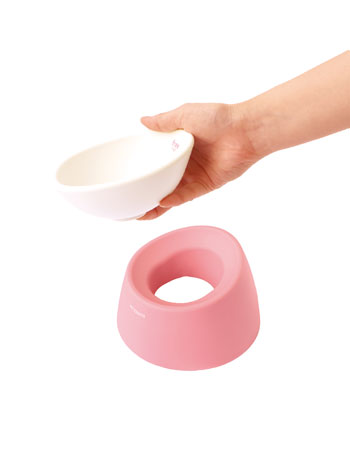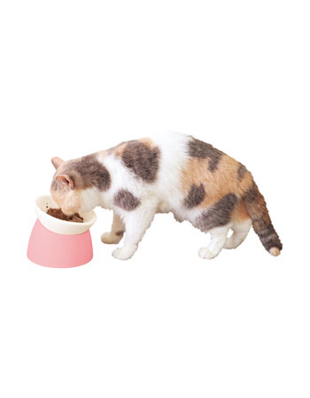 「ペットの種類を選ばず、食べやすく」というコンセプトの傾き自在の食器!
