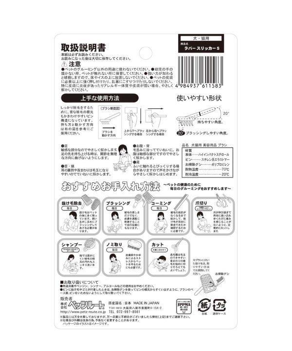 ●ペットのグルーミング以外の用途に使わないでください。●幼児の手の届かない所に保管してください。●強い力が加わると破損しますので、床やイスの上放置しないでください。●ペットの皮膚に必要以上に強く押し付けたり、乱暴にこすりつけたりしないでください。 特に皮膚に炎症があったりアレルギー体質や皮膚が弱い場合、やさしくとかしてください。