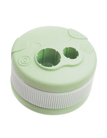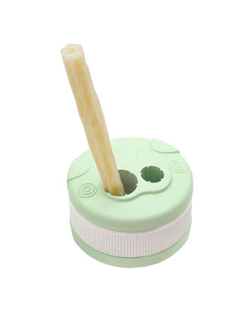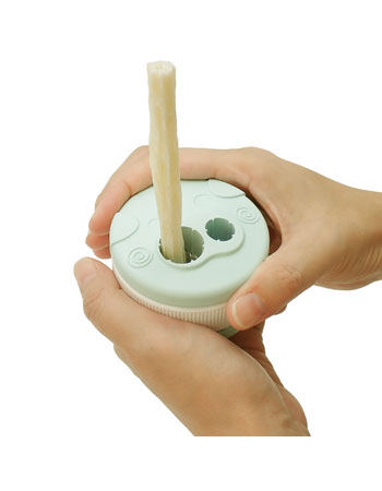 デンタルガムを穴に入れ、上下のフタを回すだけでしっかり固定。