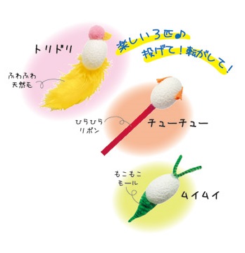 ネズミ、トリ、ムシがモチーフの3匹セットで猫ちゃん大満足です。