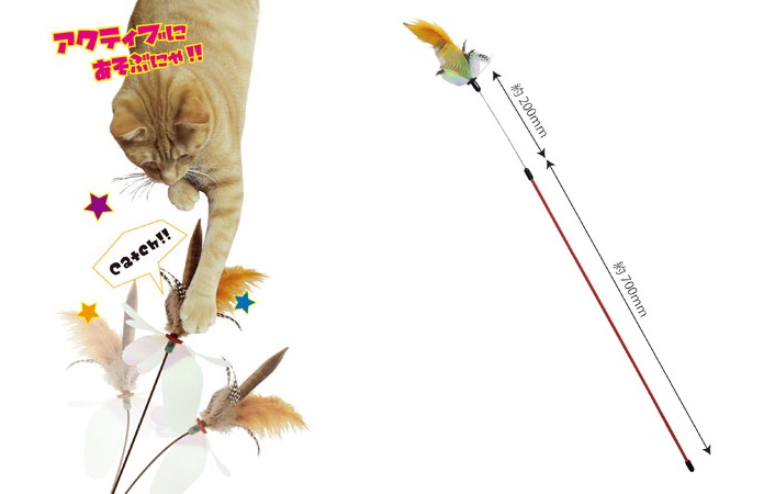 ・抜群にリアルな羽音を立てますので狩猟本能を刺激し、猫ちゃんは興奮します。・先端のおもちゃ部分を完全に捕まえた時は、一旦取りあげてから再びお遊びください。