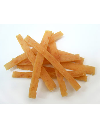 【原材料】鶏肉(胸肉、ささみ)、でん粉類、食塩、鯛エキス、ソルビトール、加工デンプン、グリセリン、香料、リン酸塩(Na)、酸化防止剤(ビタミンC)、発色剤(亜硝酸Na)、調味料、着色料(黄5、赤102)