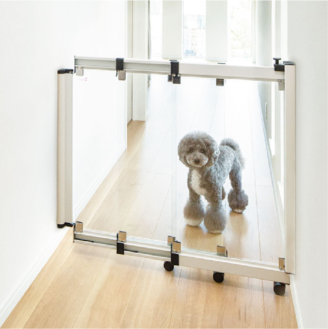 ガラスなので空間を圧迫することがなく、ワンちゃんも家族の様子が見えるので、寂しくありません。