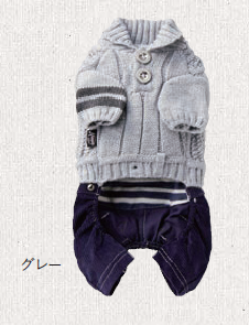 襟付ニット&パンツ上下つなぎ グレー
