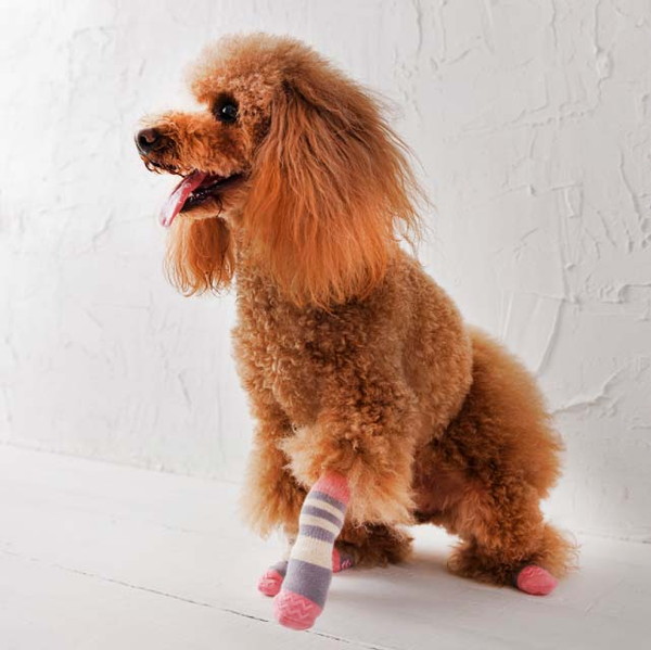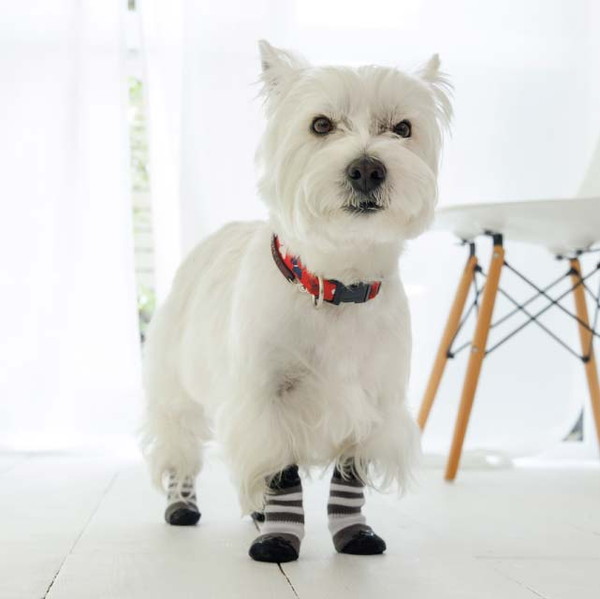 靴下を履かせることで、滑り防止はもちろん、敏感な肉球保護やクーラーでの冷え対策、冬場の防寒対策として、さらには傷の舐め防止にも役立ちます。