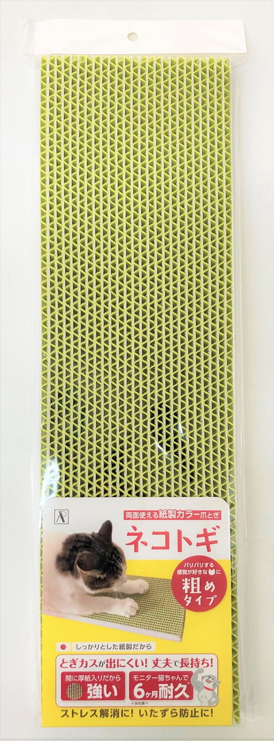 丈夫な紙製だから、とぎカスが出にくく長持ちしますレモン(黄色)の粗めタイプは、バリバリする感覚が好きな猫ちゃんに。イチジク(赤色)の細かめタイプは硬めが好きな猫ちゃんに。猫ちゃんの好みに合わせて、とぎ心地をお選びいただけます。ネコトギはしっかりとした紙製なのでとぎカスが出にくく、お掃除の手間も減ります。