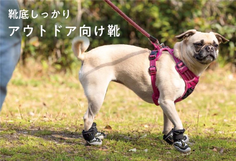 靴底がしっかりとしたアウトドア向けの犬用靴