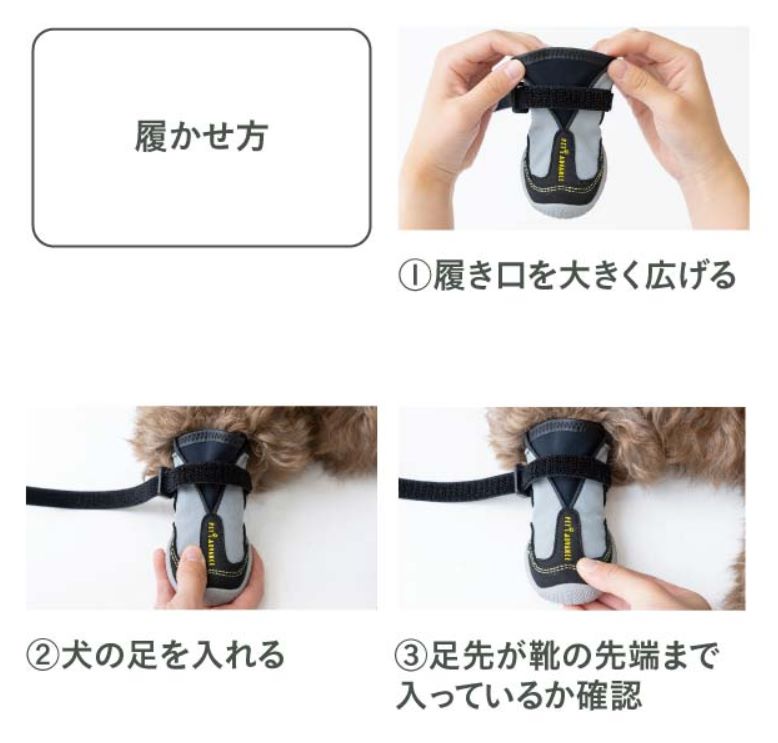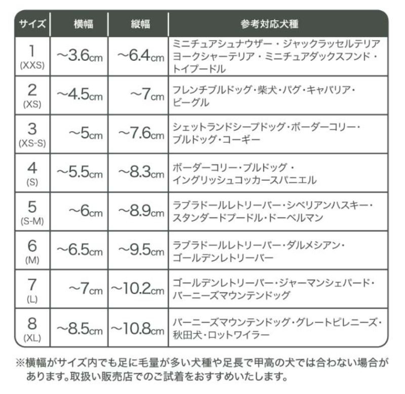 前足・後ろ足でサイズが異なる場合がございますので、前後ともサイズ測定をしてからお買い求めください。