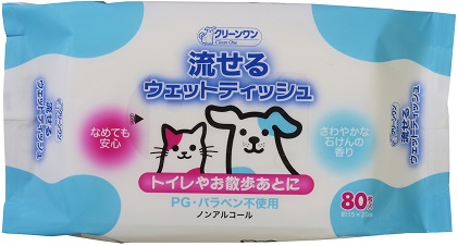 トイレに流せるので、排便後のお尻まわりの拭き取りや被毛の汚れ拭きに最適です。