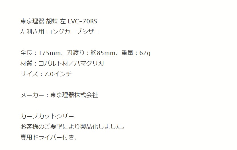 胡蝶 左利き用 カーブシザー LVC‐70RS