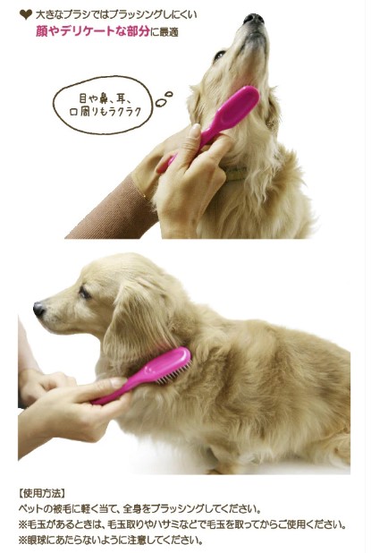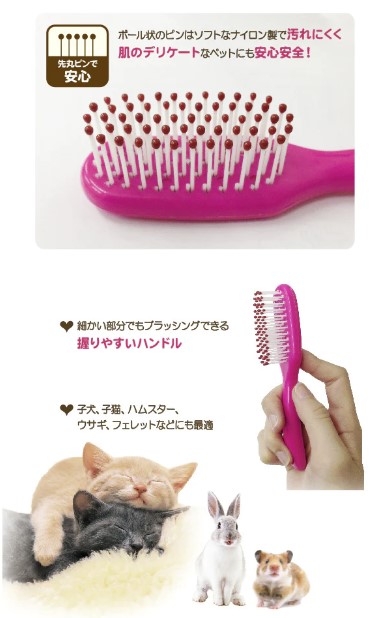 小型犬、小動物にも使いやすく、ブラシの先は先丸ピンになっているので安心です。