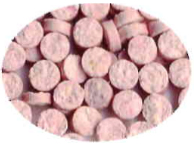 見た目もかわいいピンクの砂は、砂の飛び散りを抑えるタブレット型。