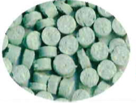 見た目もきれいなブルーグリーンの砂は、砂の飛び散りを抑えるタブレット型。