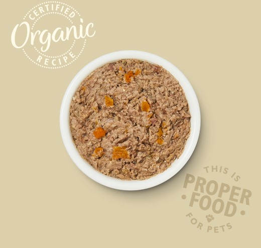 【原材料】 オーガニックターキー26%、オーガニックポーク12%、オーガニックビーフ10%、オーガニックフィッシュ4%、オーガニックチキン4%、オーガニックニンジン、ミネラル、藻類【カロリー】 91 kcal / 100g【分析成分】 粗たんぱく質 9.5%【栄養添加物(kgあたり)】 タウリン805mg【微量栄養素(kgあたり)】 キレート亜鉛15.2 mg、キレートマンガン3.2 mg、ヨウ素酸カルシウムとして0.5mg【原産国】 オーストリア【給与量目安】 1-2kg:65-110g 3-4kg:140-170g 5-6kg:200-225g〇食品は常温で与えてあげてください。〇お水が直ぐ飲めるようにしてあげてください。 〇給与目安はガイドとなり猫の活動状況によって異なりますので、調整してあげてください。