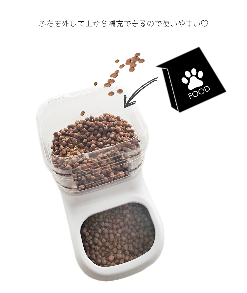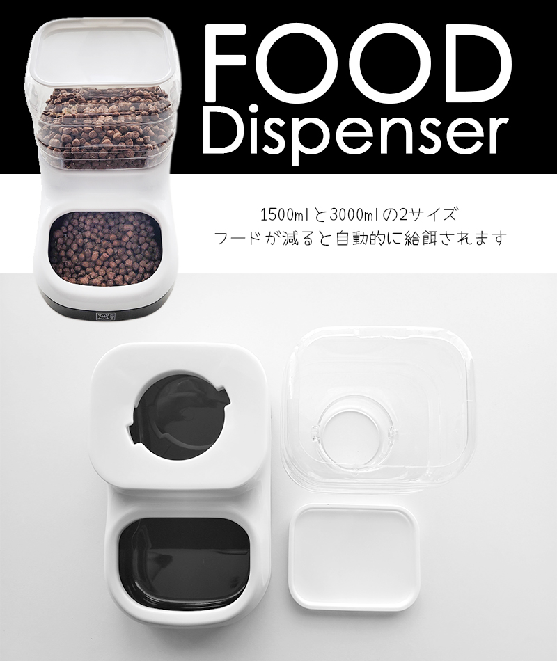 多頭飼いのお家やお留守番の多いお家におすすめのディスペンサーです。モノトーンカラーで無駄のないシンプルなデザインがおしゃれ☆電源不要なので安心してお使いいただけます。