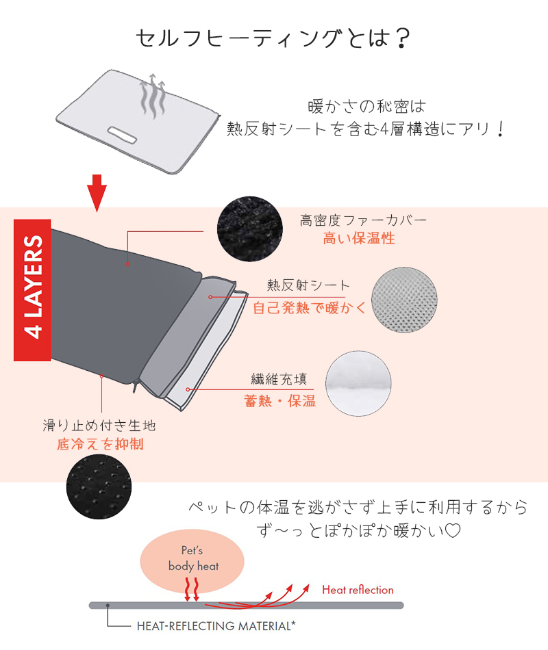 洗濯機でカバーが丸洗い可能!熱反射を利用したぽかぽかマット