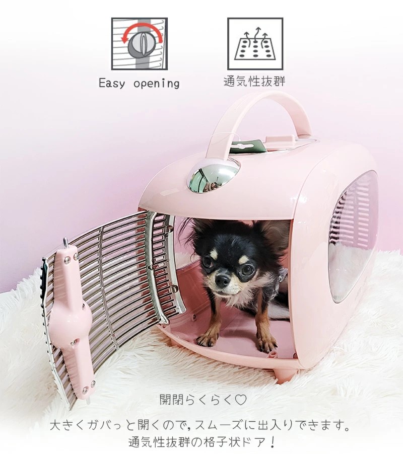 側面が大きく開き、わんちゃん・ねこちゃんの出し入れも簡単!