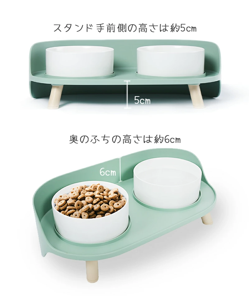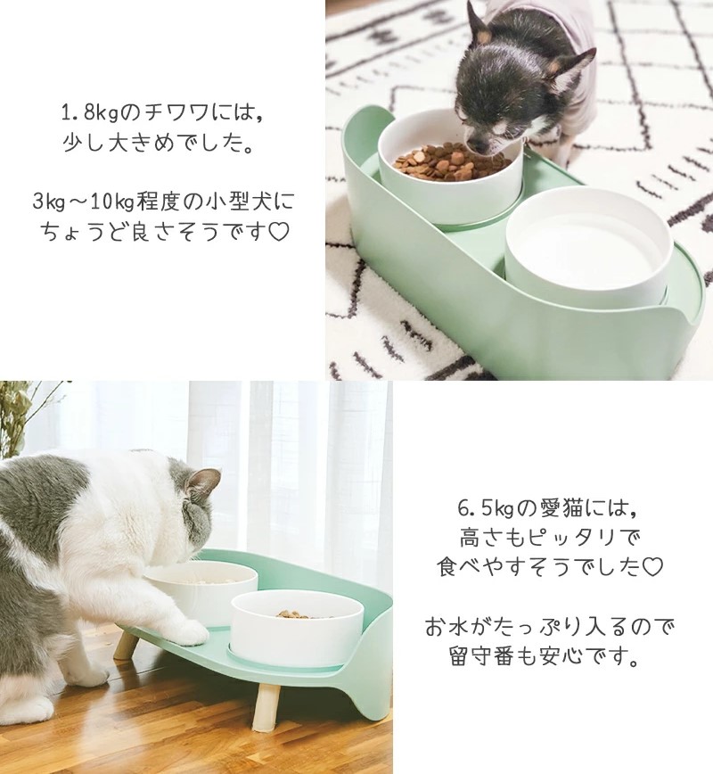 小型犬や子猫から老猫まで、ライフステージに合わせて使えます。 陶器製のお皿は電子レンジ・オーブン・食洗器・熱湯OK!だから使いやすい♪ お皿の部分は取り外しができるため、洗うのも簡単! スタンドの裏には滑り止めが付いています。 高さのある台には縁があり、食べこぼしたフードや水が床に落ちにくい設計になっています。 ワレモノなので、しっかり梱包してお送りします。