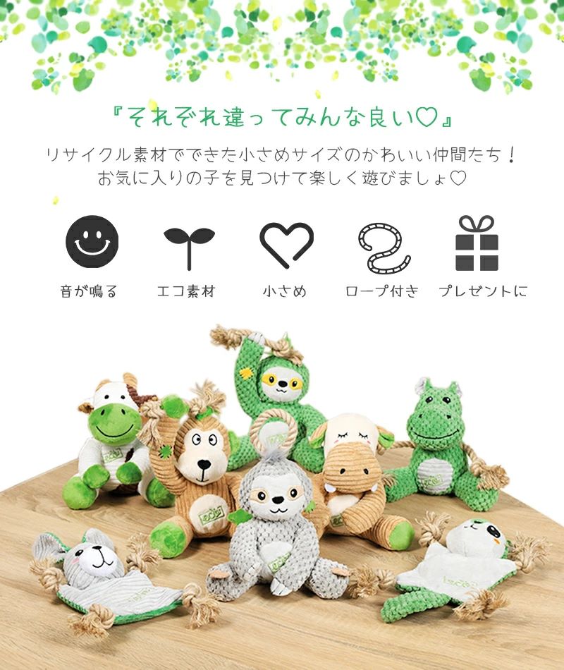 リサイクル素材で作られた環境に優しいかわいいおもちゃです。振り回して遊んだり、プー!ピー!音を鳴らして楽しく遊べます♪ロープ部分を噛むことでストレス発散&歯磨き効果も期待できます。プープー音が鳴る笛が真ん中に入っているので、わんちゃんが夢中になること間違いなし!モモンガとウサギはカシャカシャセロファン入り!