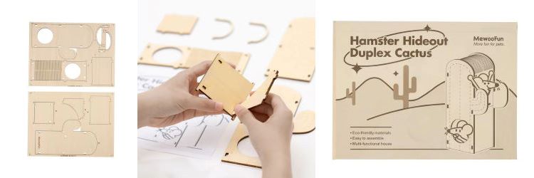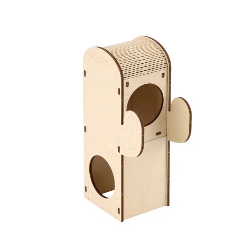 作る楽しさも味わえる簡単組み立てタイプの小動物用ハウスです。サボテンをモチーフにした秘密の隠れ家で、動物が出入りする姿が可愛く見えます。ペットに優しい厳選された高品質のバスウッド(シナノキ)合板を使用しており、天然の木の香りがペットを惹きつけます。