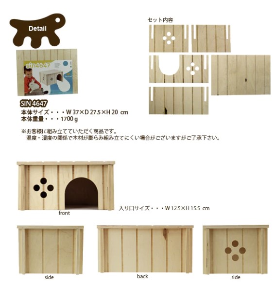 小動物用木製ハウス SIN 4647 うさぎ ラビット モルモット