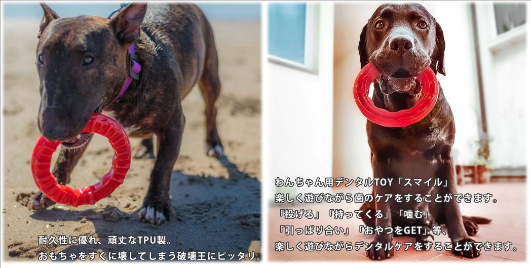 わんちゃん用デンタルTOY「スマイル」楽しく遊びながら歯のケアをすることができます。