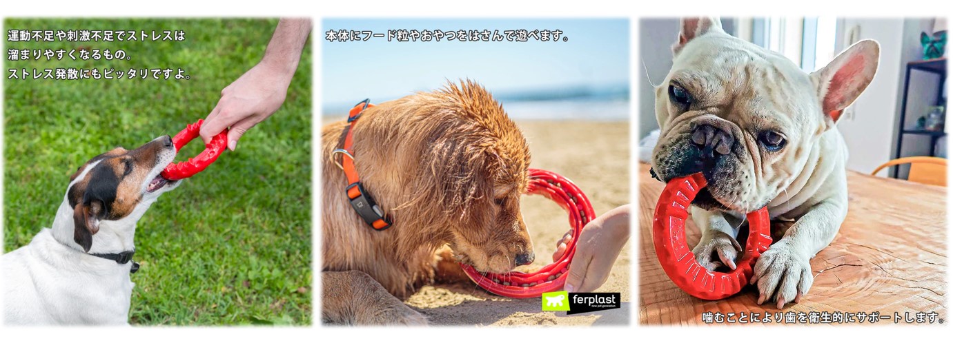 投げる」「持ってくる」「噛む」「引っぱり合い」「おやつをGET」等、楽しく遊びながらデンタルケアをすることができます。