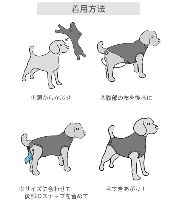 犬の形態や骨格を元にデザインされ、ぴったりとフィットするので犬自身では脱ぎにくく、