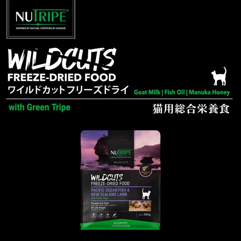ニュートライプ キャット ワイルドカット フリーズドライ ビーフ&チキンwithグリーントライプ280g