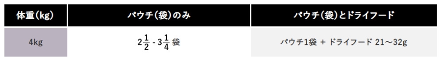 ・上記の量を1日2回に分け、個体によって量を調節してください。 ・単品で使用または「プロプラン 7歳以上用」ドライと併用してください。