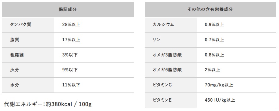 また、AAFCO(米国飼料検査官協会)の栄養基準を満たしています。