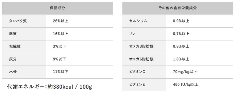 また、AAFCO(米国飼料検査官協会)の栄養基準を満たしています。